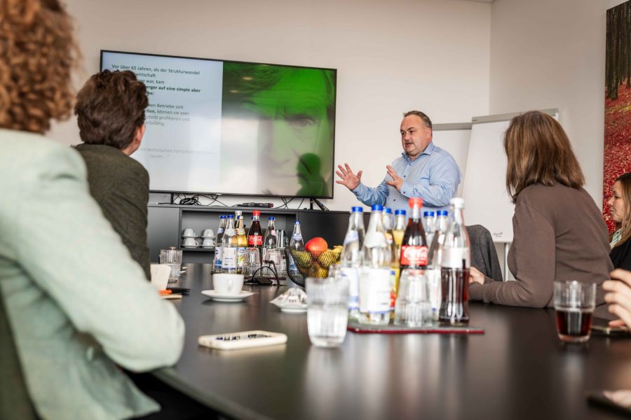 Martin Gehring informierte Katrin Göring-Eckardt und Leon Eckert sowie Karola Schwarz und Gerhard Schoder. Norbert Binger, Hausherr und Geschäftsführer der Maschinenringe Deutschland GmbH begrüßte die Politiker. Foto: Alexander Waas
