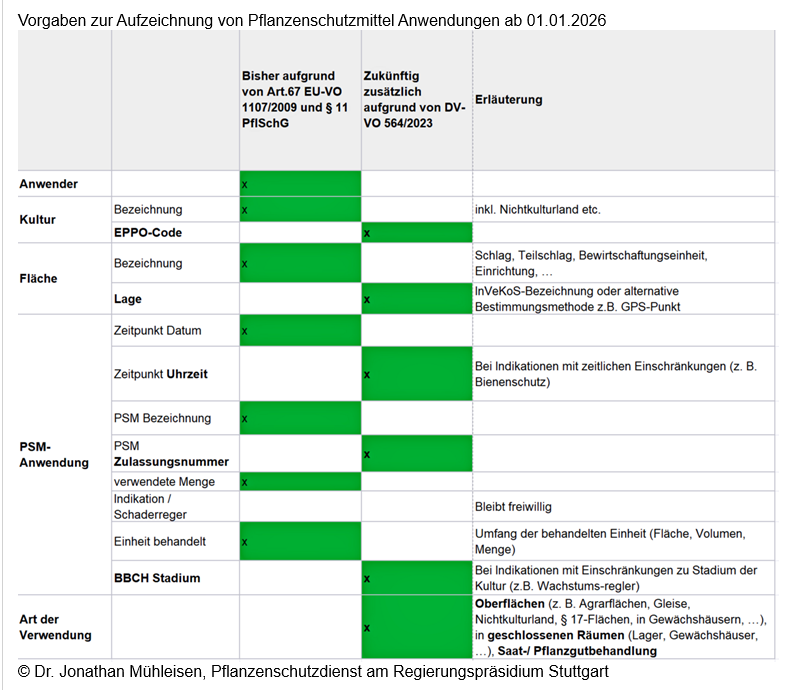 Folgende Tabelle (Pflanzenschutzdienst am Regierungspräsidium Stuttgart) zeigt, was sich verändert: