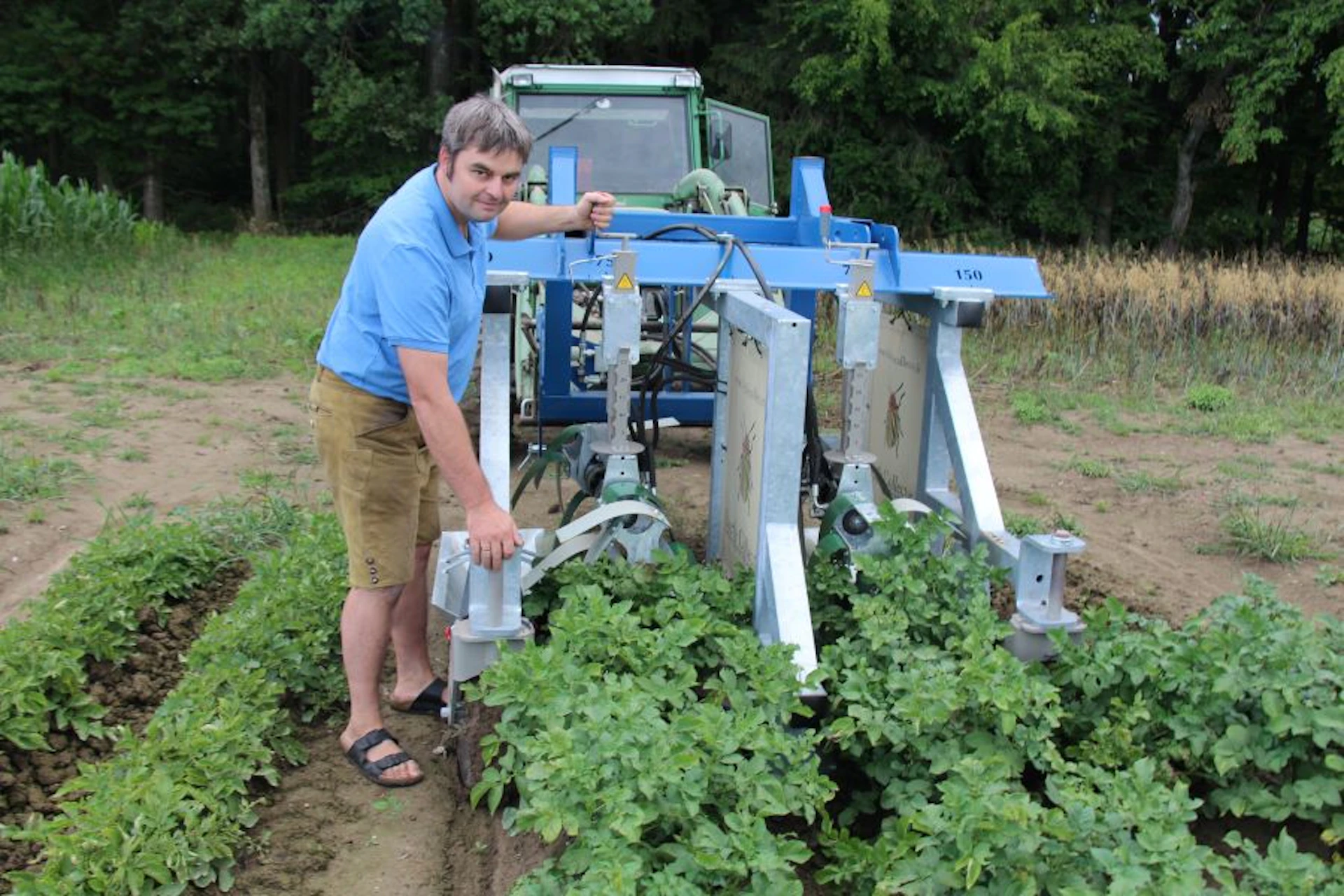 Kartoffelkäfer und ihre Larven von Hand sammeln? Das war gestern. Jetzt hat ein bayrischer Nebenerwerbslandwirt ein geniales Gerät entwickelt. Der Absammelerfolg des ‚Kartoffelkäfer-Sammlers Gallinger‘ liegt bei nahezu 100 Prozent. Angeboten werden handgeführte Geräte, aber auch eine zwei- sowie eine vierreihige Schlepper-Ausführung für den professionellen Einsatz auf der Fläche.