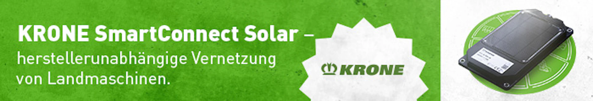 Mit der Telemetrieeinheit soll die Vernetzung aller Maschinen kein Problem mehr sein, verspricht KRONE. Das „SmartConnect Solar“ ist mit einem Solarpanel und einem Akku ausgestattet, mit dem Maschinen „vollständig autark“ und „unabhängig vom Hersteller oder Einsatzzweck“ genutzt werden können, so der Landmaschinenhersteller. Ein integrierter GPS-Empfänger und ein Funkmodem übermitteln Positions- und Statusdaten in Echtzeit.