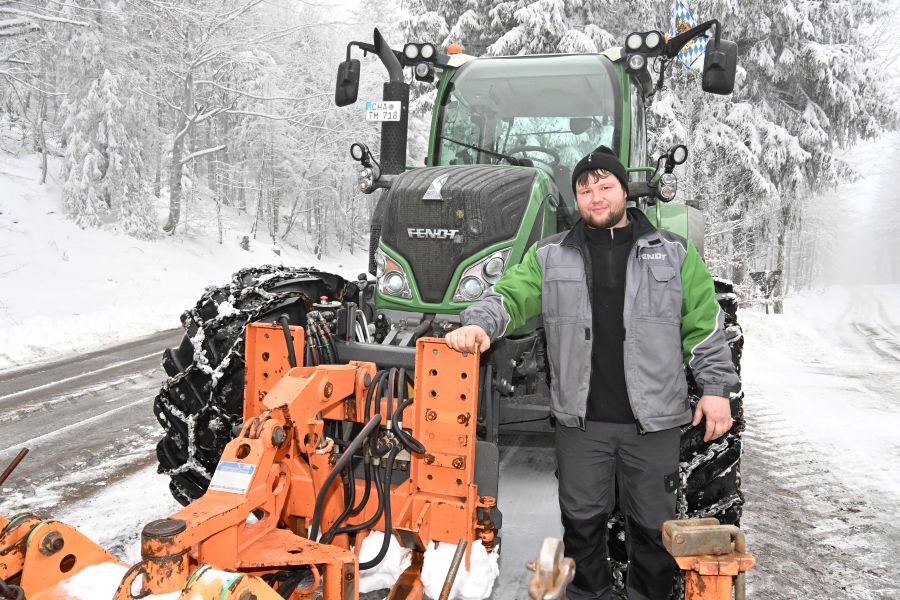 Andreas Traurig hält mit seinem Fendt die Straßen auf den Höhenlagen des Hohen Bogens im Bayerischen Wald frei. Foto: Gunther Lehmann